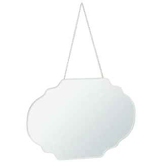This ornate, vintage-style mirror features wall-chain and bevelled edge.